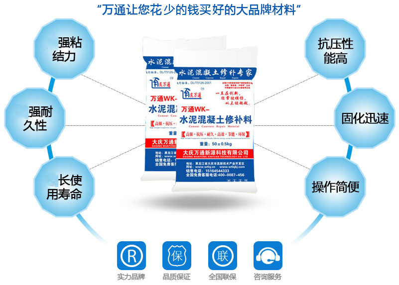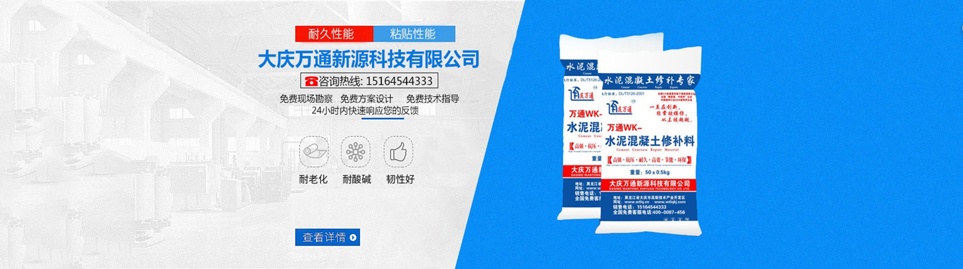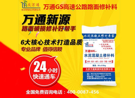 大慶萬通新源科技有限公司獨有的混凝土路面高強(qiáng)速補(bǔ)料,是水泥混凝土路面病害修復(fù)的好材料。疲勞、凍融循環(huán)、彎曲壓力、滲水和基層破壞等原因都會引起水泥路面的破損,從而帶來高昂的維護(hù)費(fèi)用。與以往的剛性修補(bǔ)方法不同,混凝土水泥路面維修速補(bǔ)膠提供了一種獨特的柔性修補(bǔ)產(chǎn)品和技術(shù),高柔性、高抗拉性,可跨伸縮縫施工和高抗壓性使得混凝土快補(bǔ)產(chǎn)品為水泥混凝土路面提供了******性的修補(bǔ)。傳統(tǒng)的剛性修補(bǔ)方案,如環(huán)氧砂漿和快干水泥產(chǎn)品,由于其自身的粘結(jié)失效,抗疲勞性低以及與原路面不同的伸縮系數(shù),修補(bǔ)面會在短時間內(nèi)失效或產(chǎn)生新的裂縫,需要反復(fù)修補(bǔ),有效期短且費(fèi)用高昂。大慶萬通新源科技有限公司的混凝土水泥路面維修速補(bǔ)膠可以隨原路面一起伸縮,移動,從而避免了粘結(jié)失效和產(chǎn)生新裂縫。萬通快補(bǔ)產(chǎn)品優(yōu)異的粘結(jié)性、柔韌性和高防滑性,特別適用于水泥路面的淺層粘合修補(bǔ),多邊角混凝土板層修補(bǔ),跨伸縮縫修補(bǔ)以及路面沉陷修補(bǔ)。萬通混凝土病害修補(bǔ)料針對混凝土起皮起沙、斷板裂縫、蜂窩麻面、坑槽露石子、漏筋掉皮、橋梁的掉皮漏筋快速通車使用時間長。應(yīng)用萬通快補(bǔ)產(chǎn)品,施工后一天就可以恢復(fù)交通。大慶萬通新源科技有限公司的萬通水泥路面維修速補(bǔ)膠適用于高速公路、機(jī)場路面、農(nóng)村村村通路面、廠坪、學(xué)校操場、市區(qū)公路、小區(qū)路面、橋梁、水泥路面的修補(bǔ)。使用萬通特快補(bǔ)材料修補(bǔ)路面可以一勞永逸! 水泥地面起砂怎么辦,混凝土修補(bǔ)劑混凝土地面起砂,混凝土地面修補(bǔ),地面起砂怎么辦,